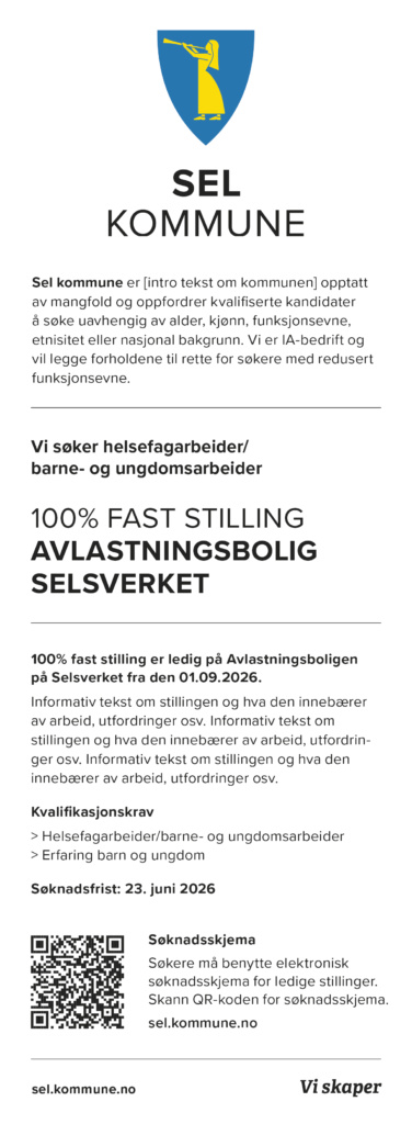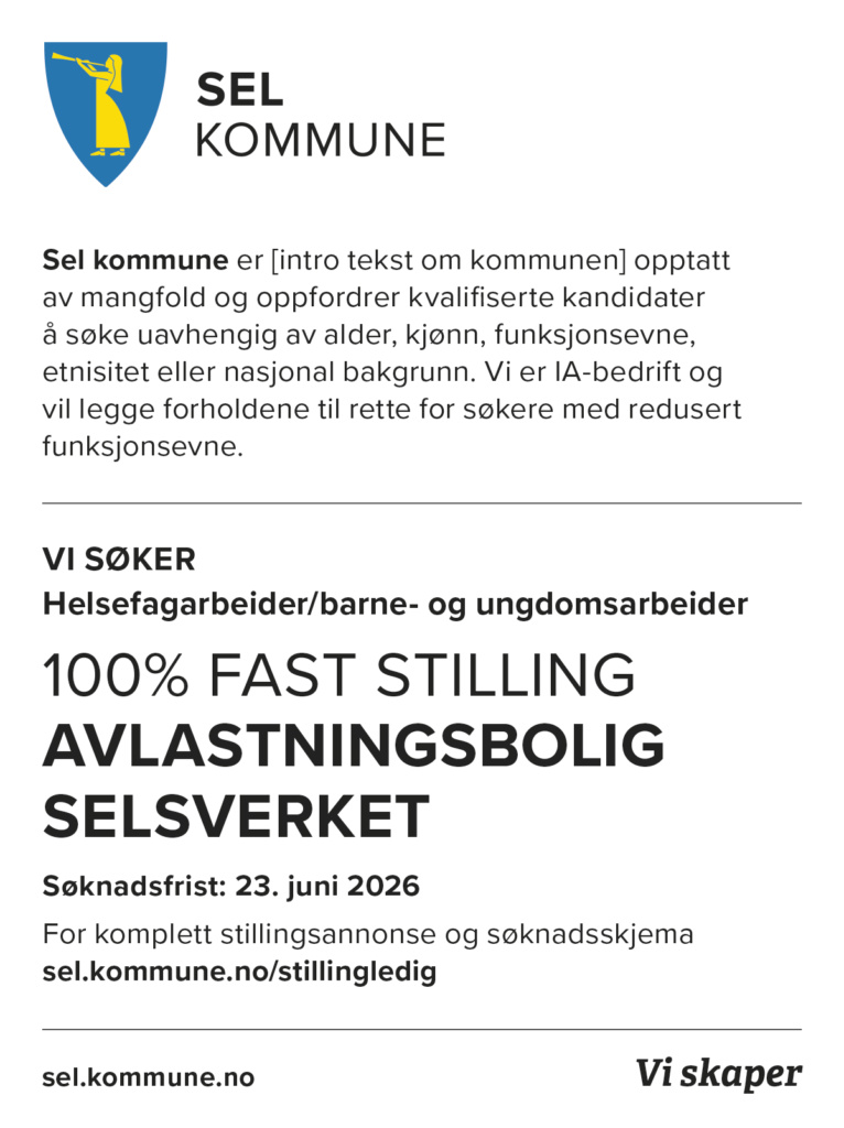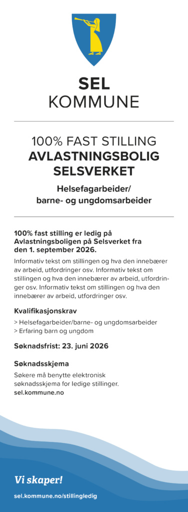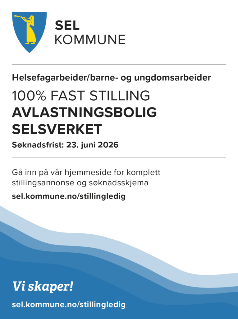 I Sel kommune er det rom for å vokse, tid til å lære, mulighet for å jobbe og frihet til å leve. Vi skaper!